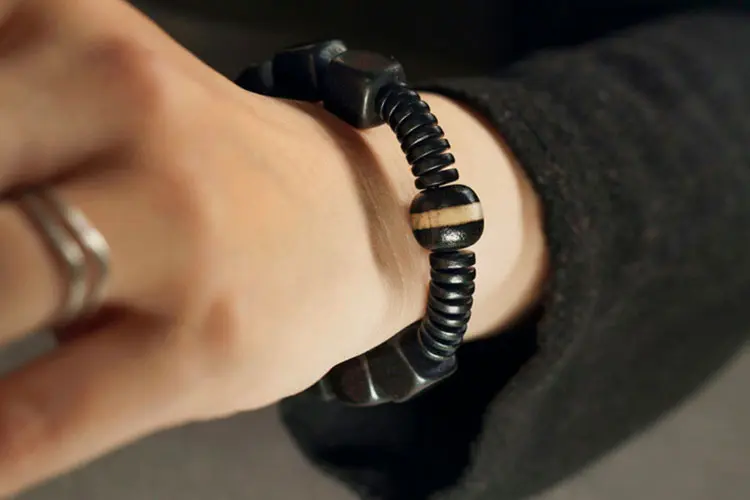 • A Duality of Natural Ebony: The body of this powerful bracelet is crafted from genuine, sustainably sourced ebony wood in two distinct forms.