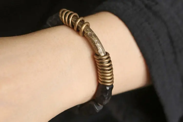 • For Meditation & Grounding: This Spiritual Grounding Jewelry is an exceptional tool for tactile meditation. The raw, varied texture of the ebony beads is a powerful sensory anchor. During moments of stress, roll the beads between your fingers, then switch your focus to the cool, ridged surface of the brass coil. This focus on physical sensation can instantly pull your awareness out of an anxious mind and into the solid reality of the present moment, a core mindfulness practice discussed on platforms like MindBodyGreen.