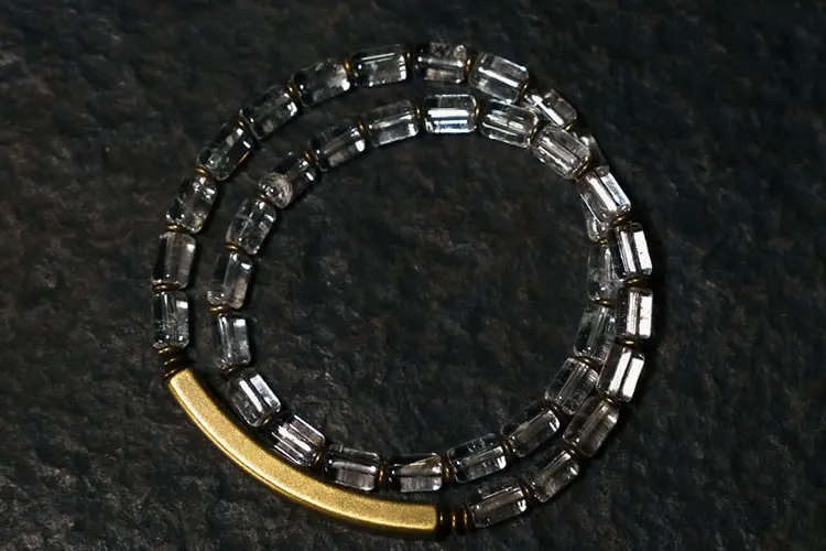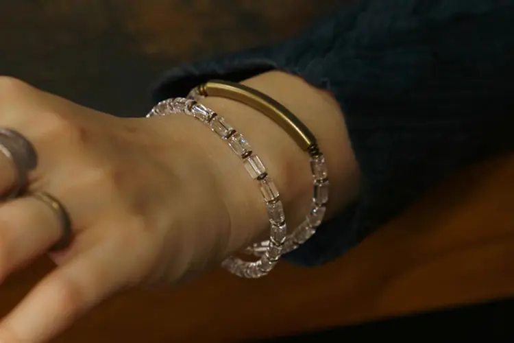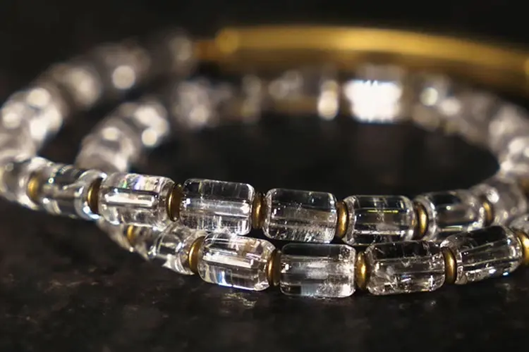 Faceted Clear Quartz Beads: Unlike traditional round beads, these high-quality, natural Clear Quartz crystals are expertly cut into a rectangular, faceted shape. This unique cut creates a stunning, prismatic effect, causing the bracelet to shimmer with a “liquid light” appearance as it moves. Known as the “Master Healer,” Clear Quartz is prized for its exceptional clarity and energy-amplifying properties. As noted by sources like the Gemological Institute of America (GIA), its stable and powerful energy frequency has made it a cornerstone in both technology and spiritual practices for centuries.