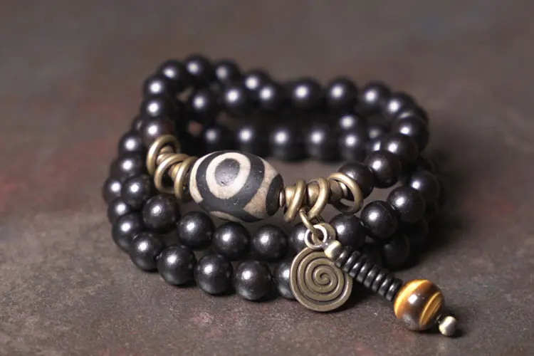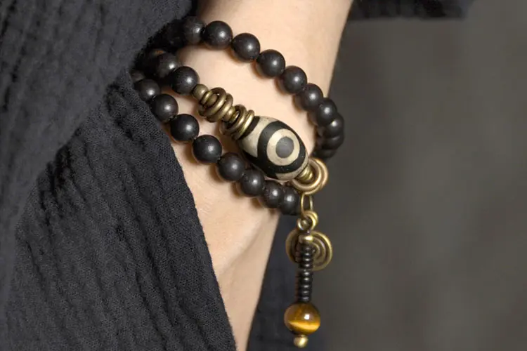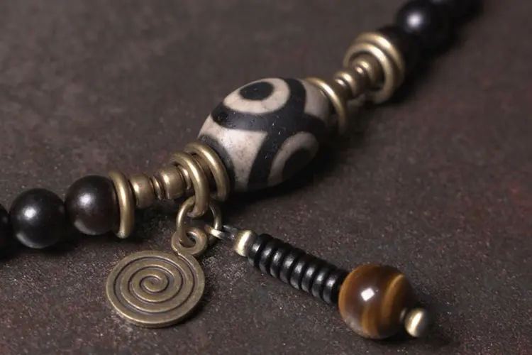Material: Ebony Wood,Brass,Golden Tiger’s Eye,Three-Eyed Dzi Bead