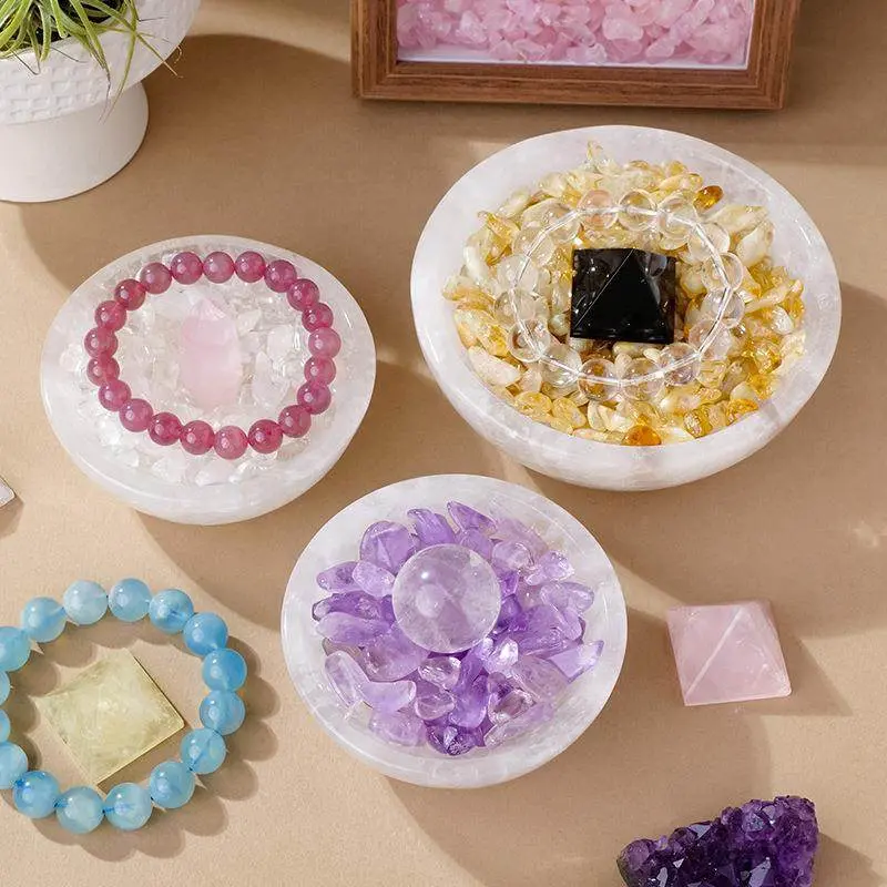 - 🔮 For Cleansing Other Crystals: This is Selenite’s most famous use. Place your other crystals—especially those you wear daily like bracelets and necklaces—on a Selenite charging plate or slab overnight. The Selenite will naturally draw out any stored negative energy and recharge them with pure, positive light.